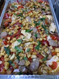 Chicken breast sautéed with sausage, sweet & hot peppers & potatoes in a garlic white wine sauce.