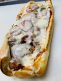 Traditional Philly steak, Mushroom, onion, peppers, american cheese and mozzarella