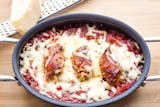 Lightly breaded, topped with tomato sauce & then baked with mozzarella.